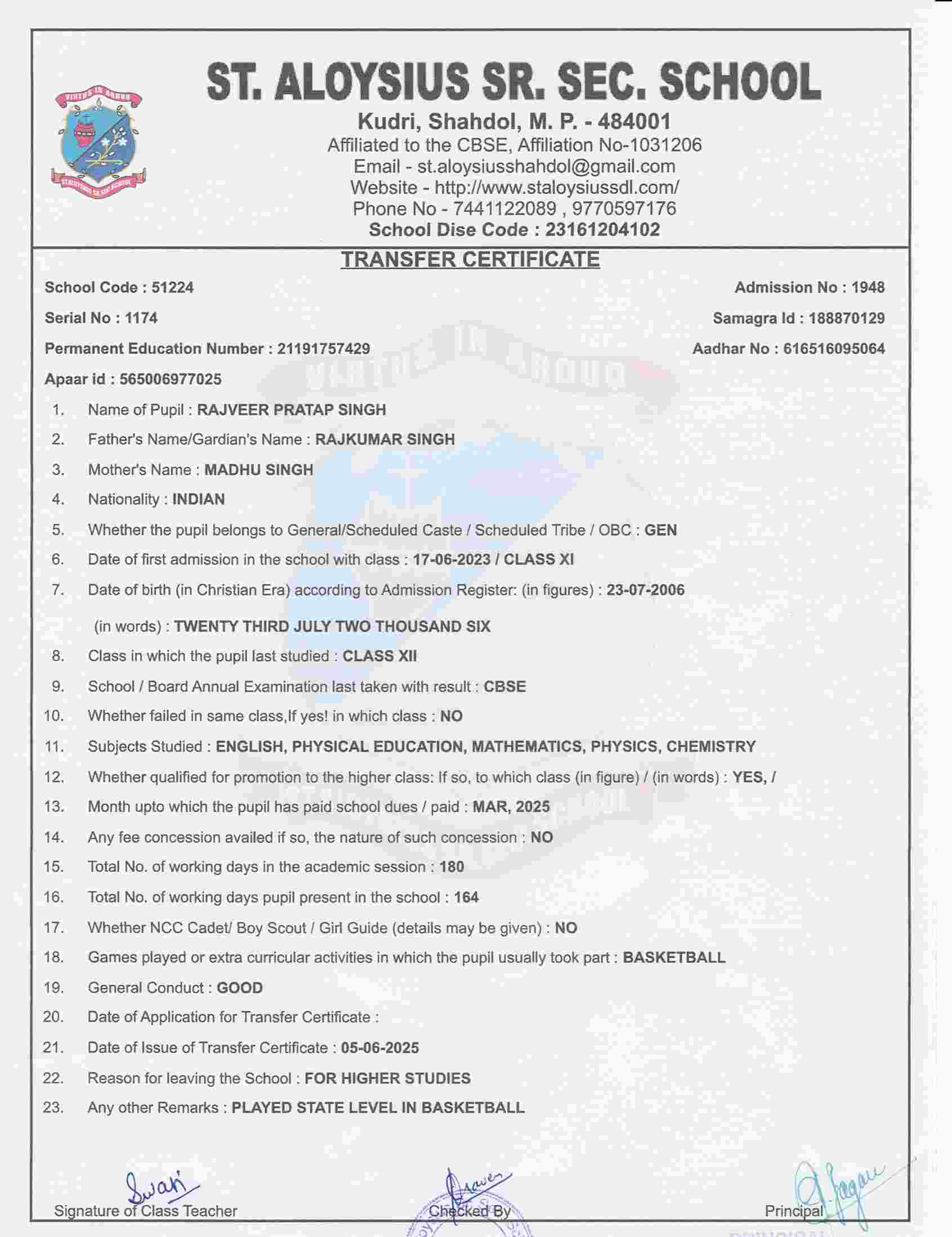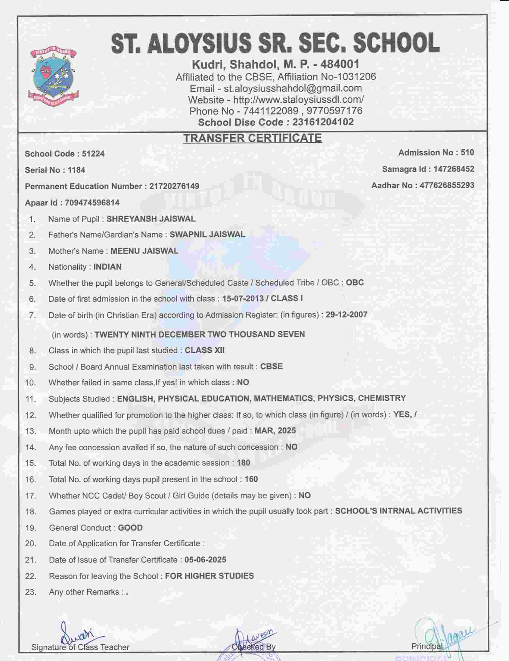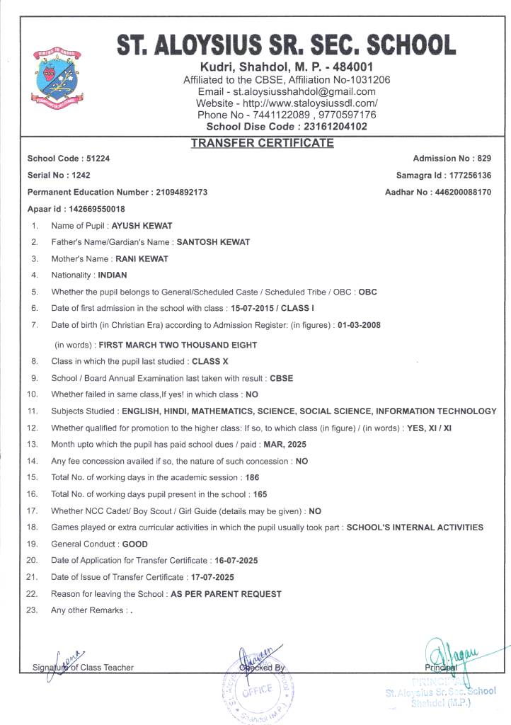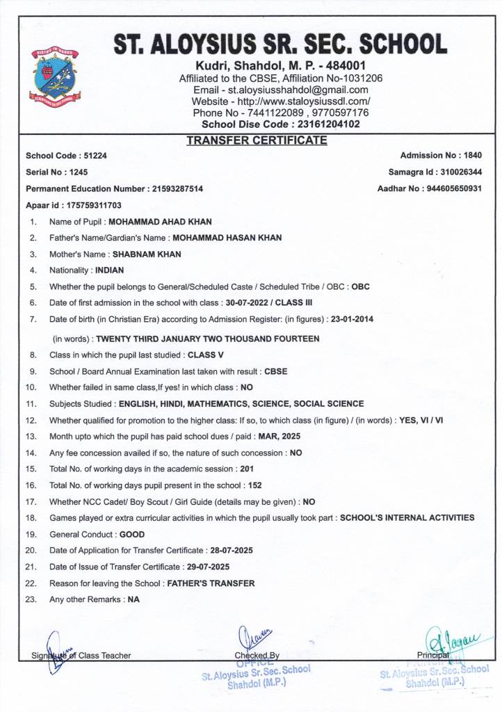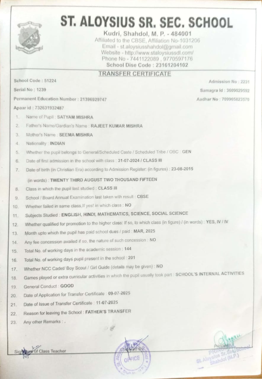 Welcome to St. Aloysius Senior Secondary School, Shahdol