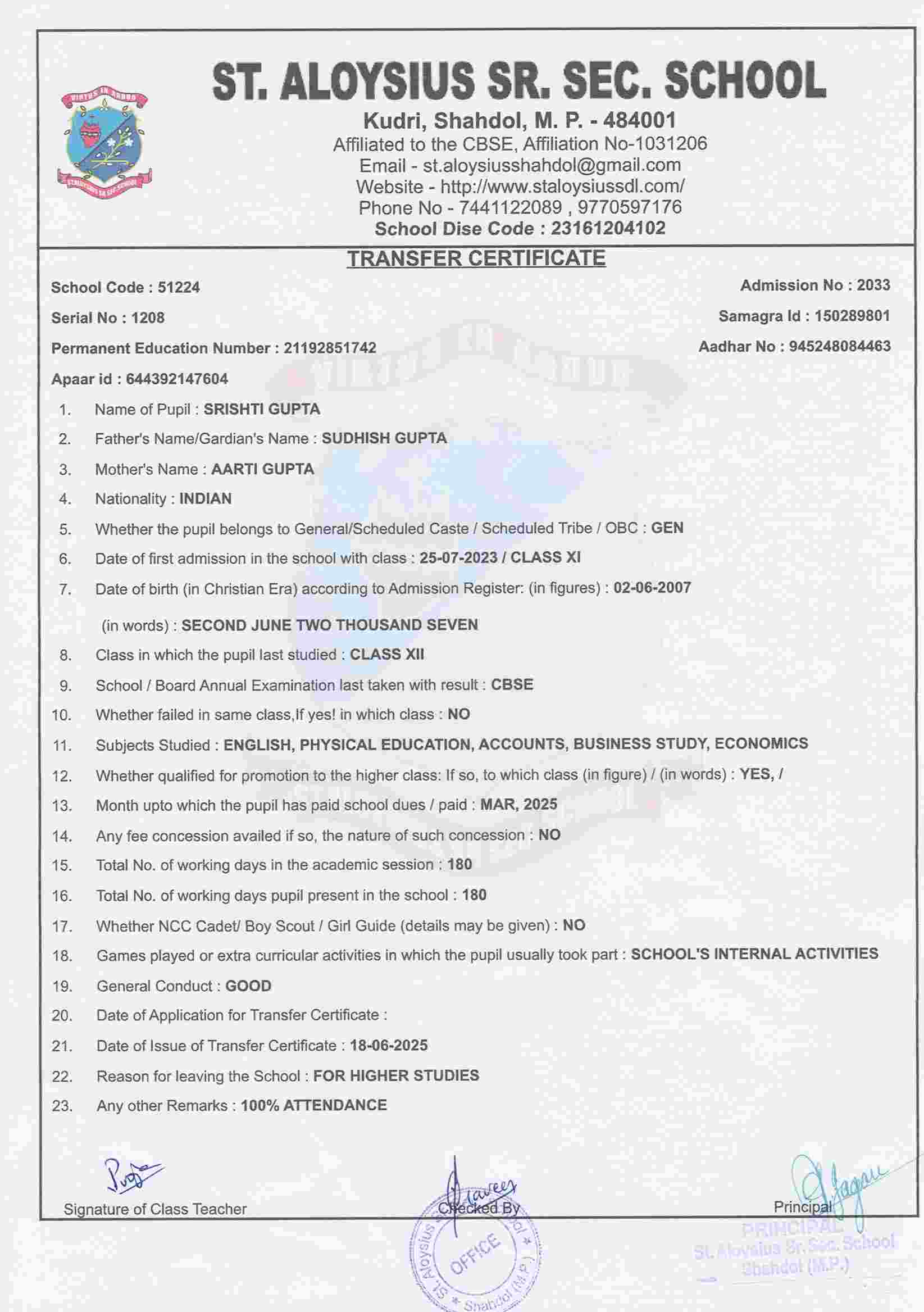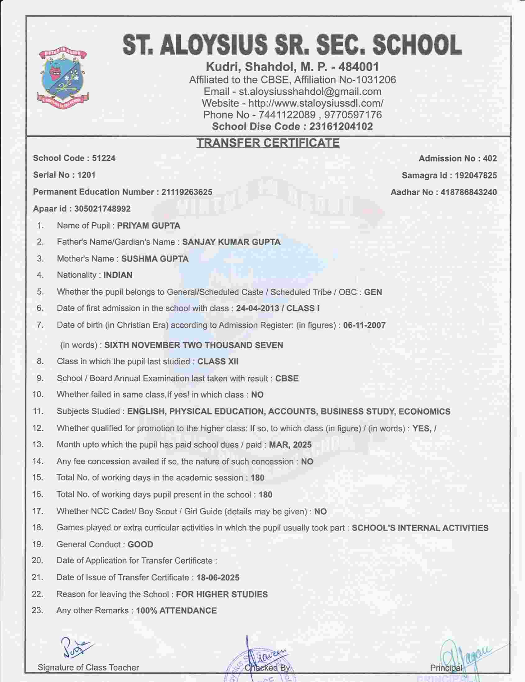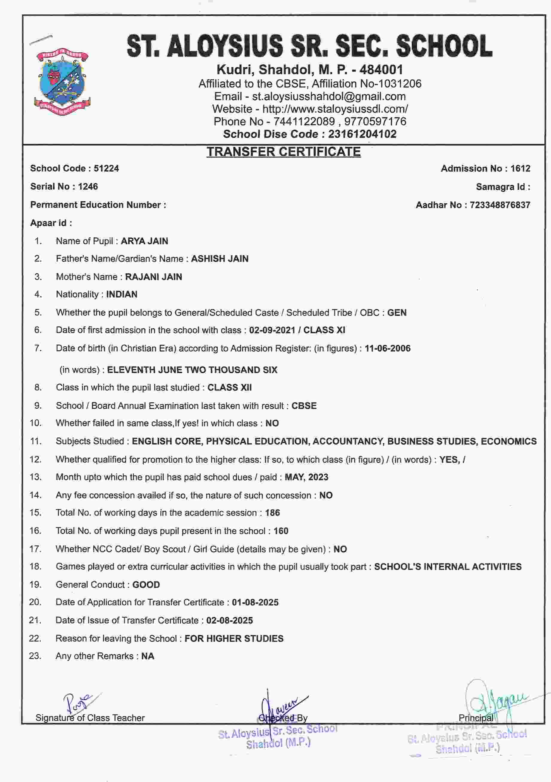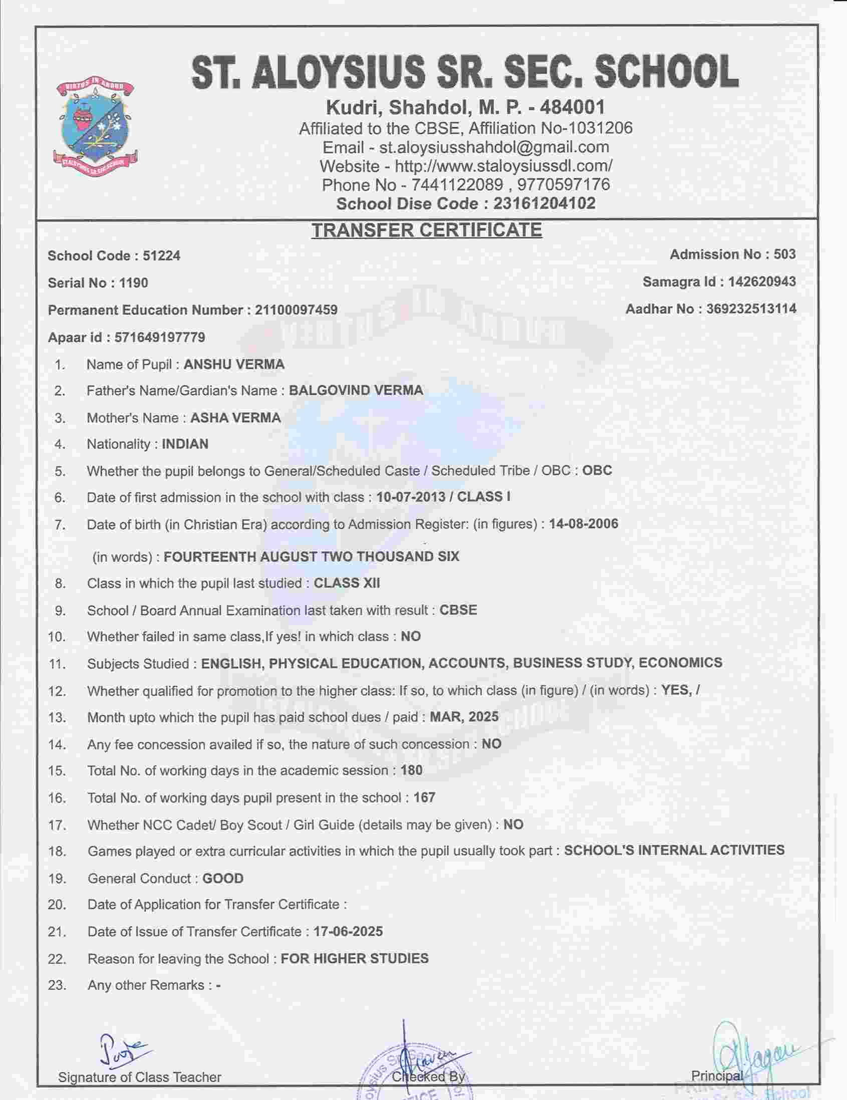 Welcome to St. Aloysius Senior Secondary School, Shahdol