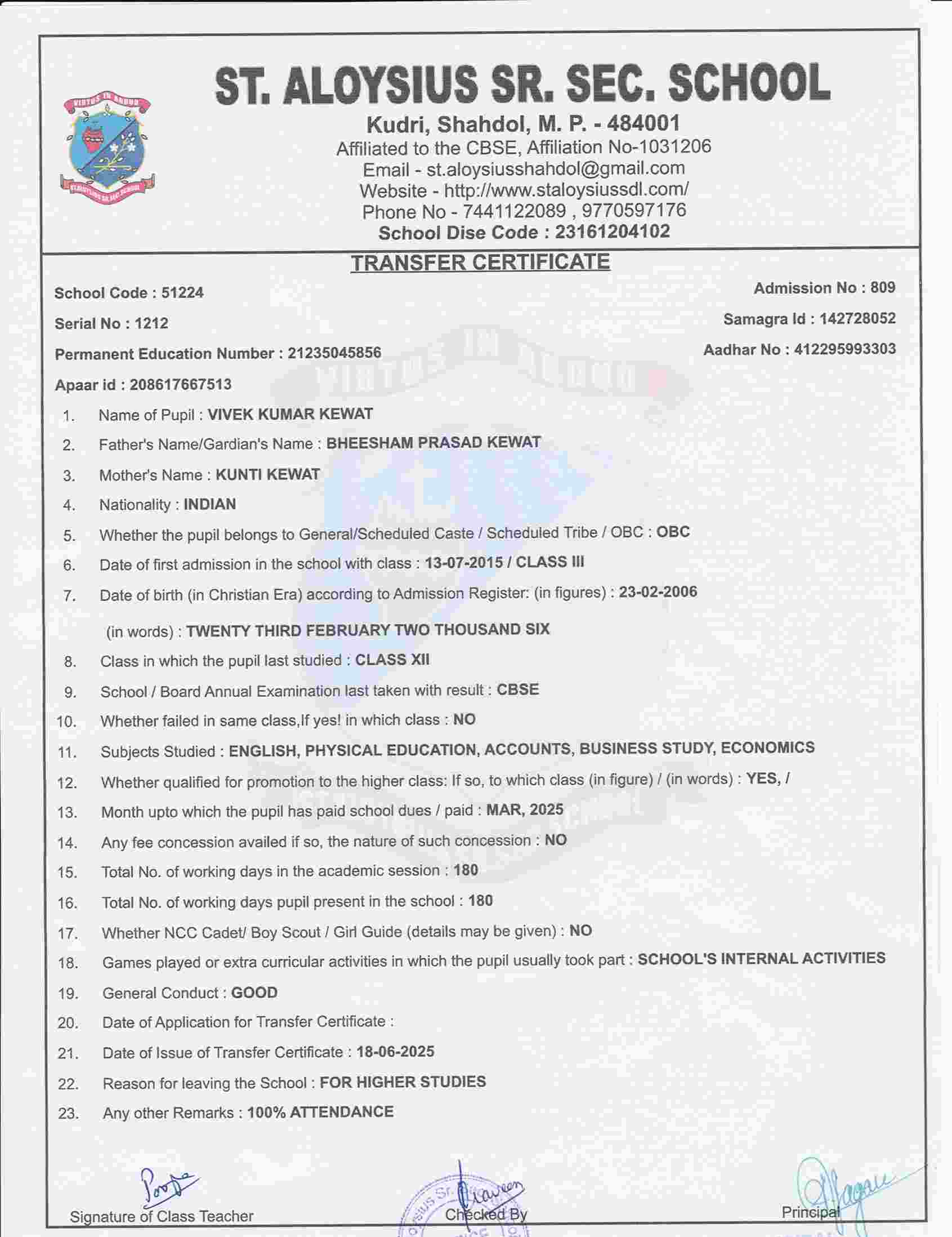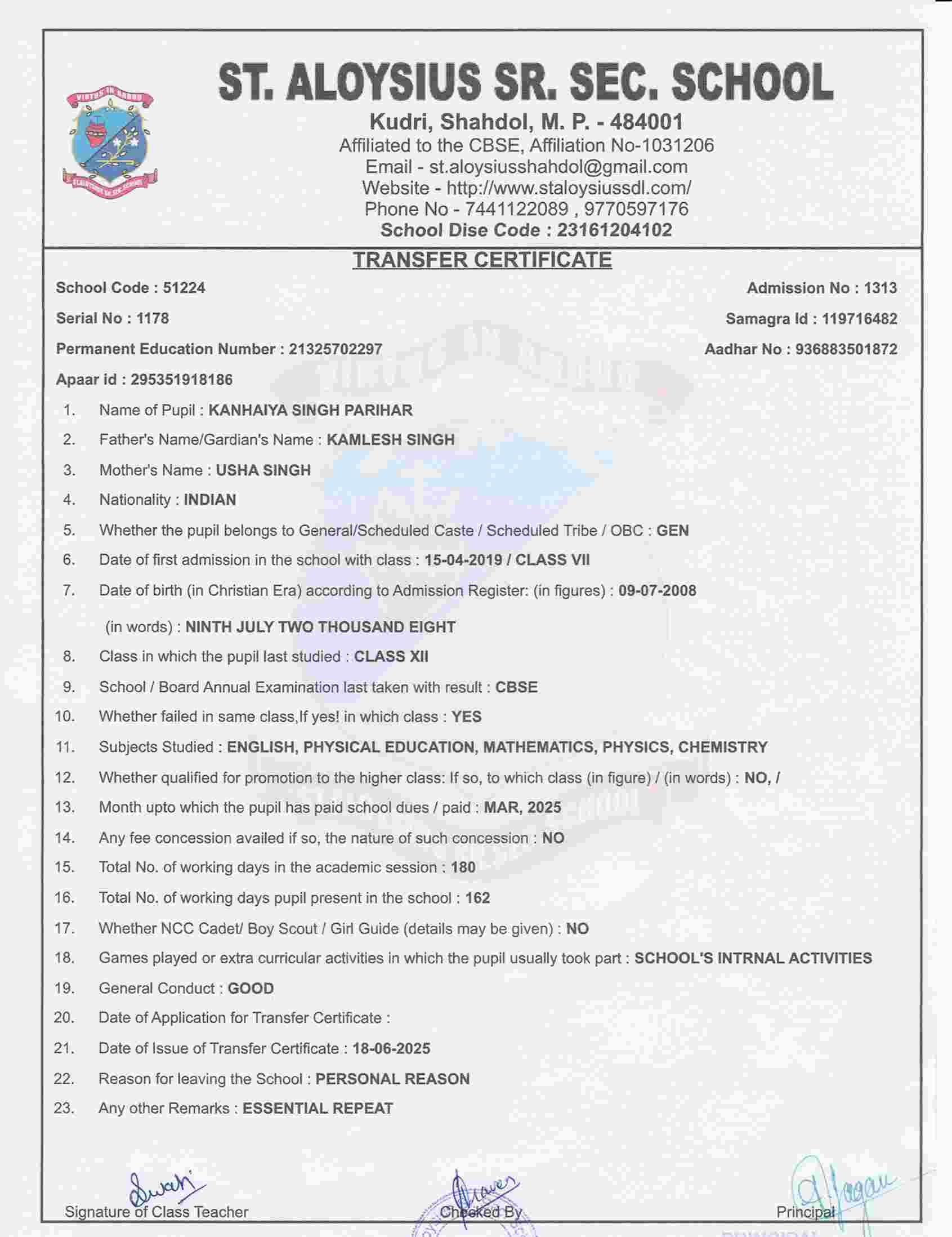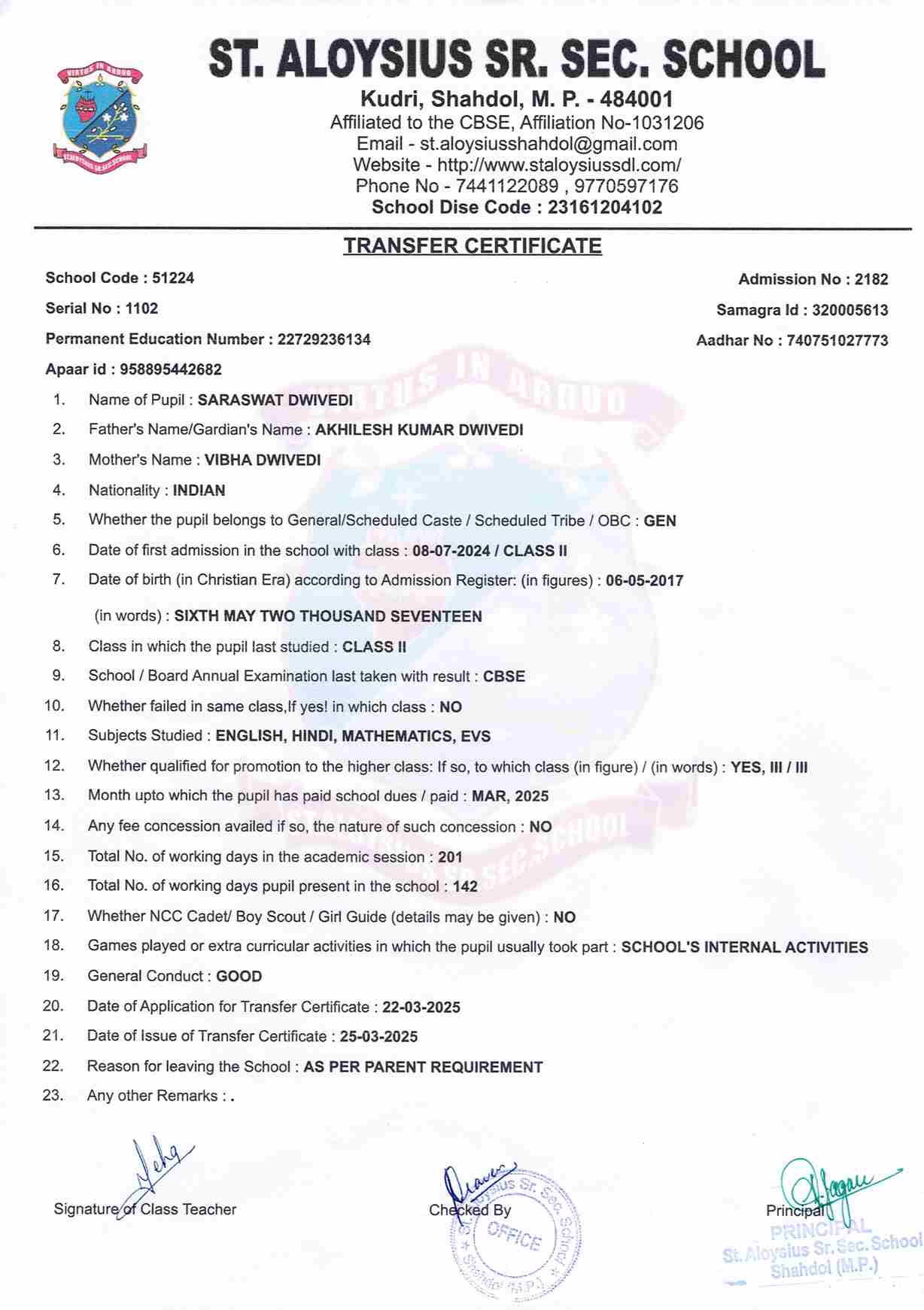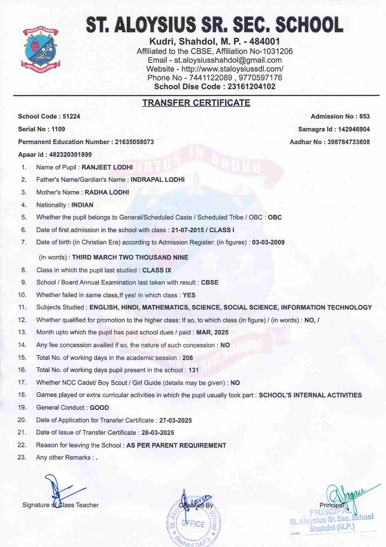 Welcome to St. Aloysius Senior Secondary School, Shahdol
