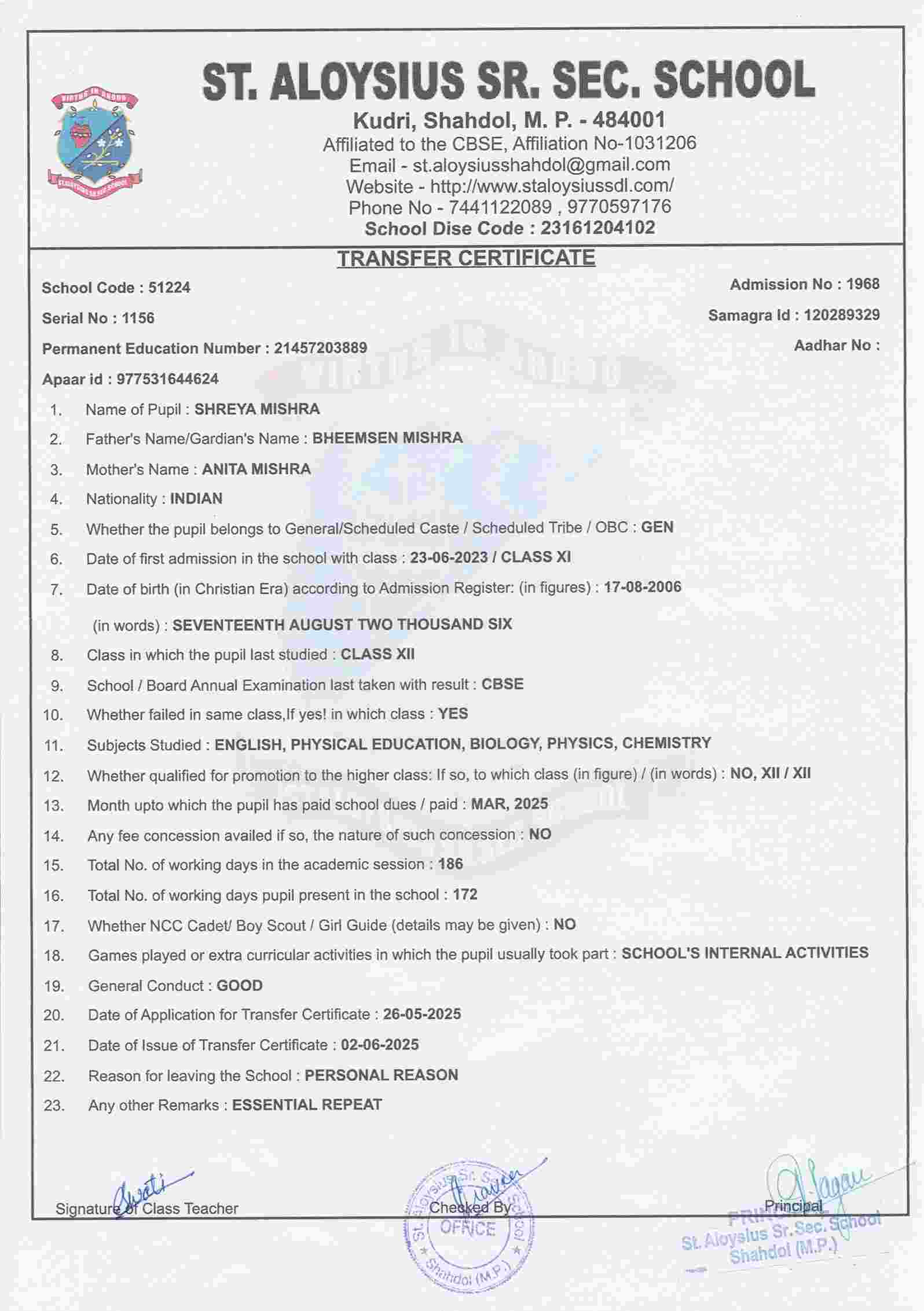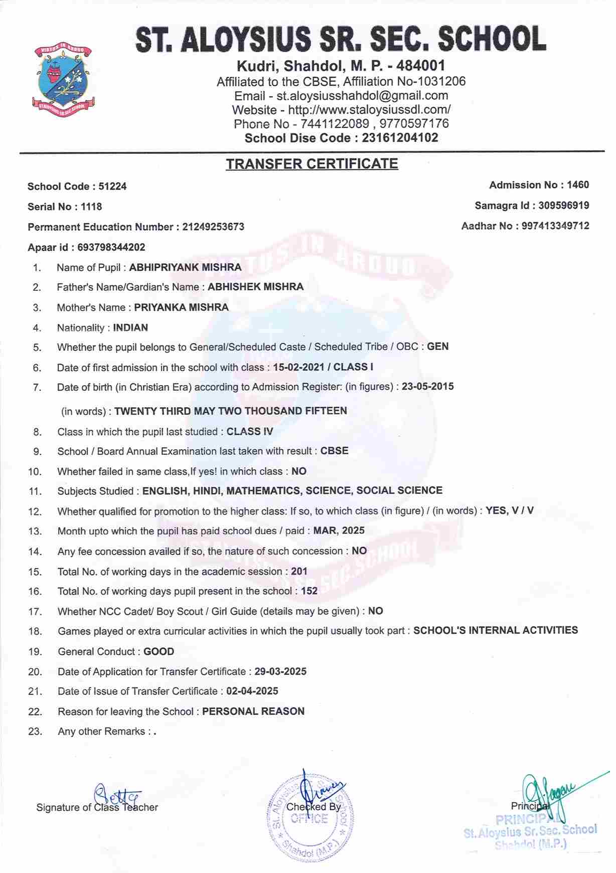 MOTHER'S NAMEPRIYANKA MISHRA