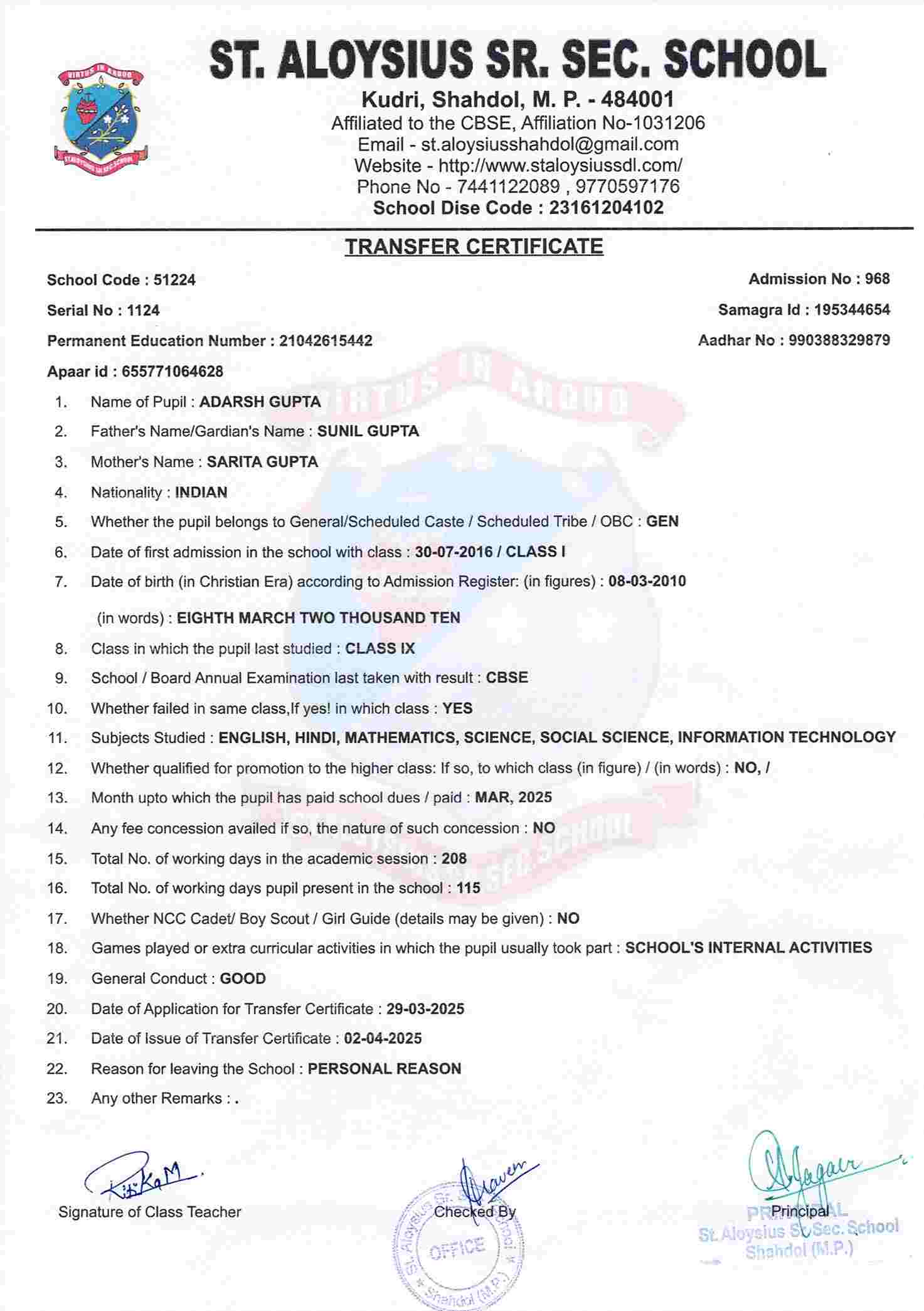 NAME OF STUDENTADARSH GUPTA