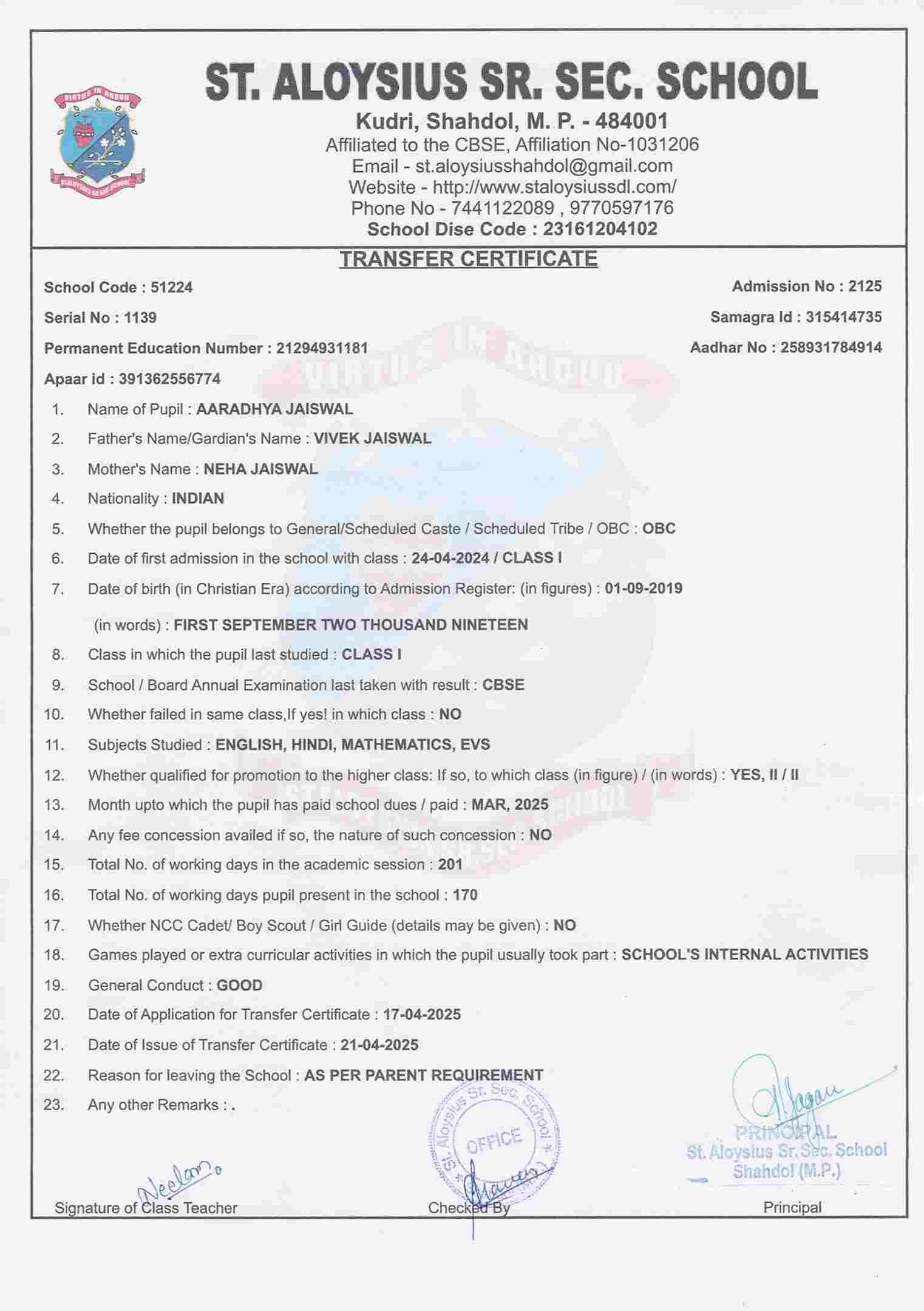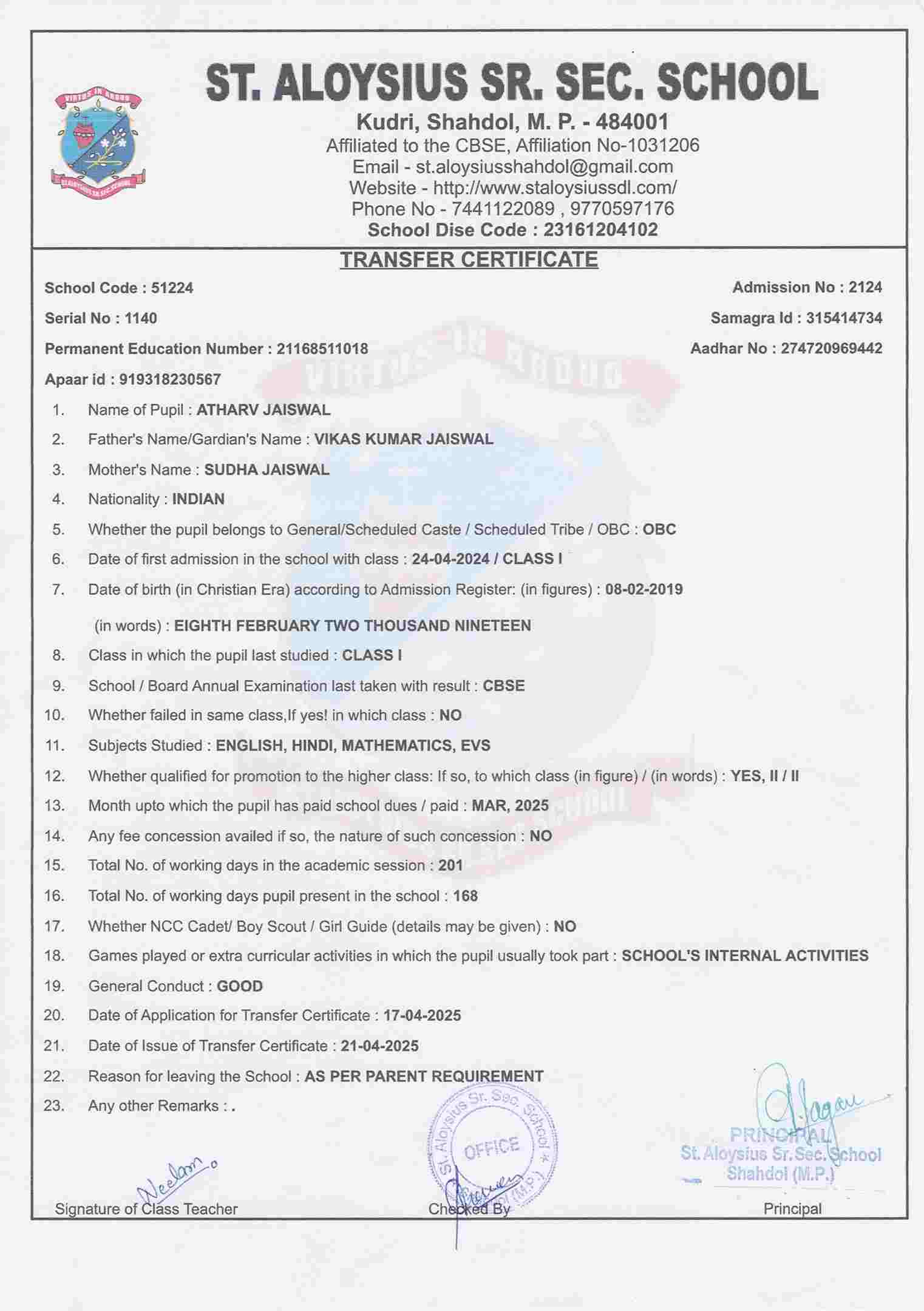 FATHER'S NAMEVIVEK JAISWAL