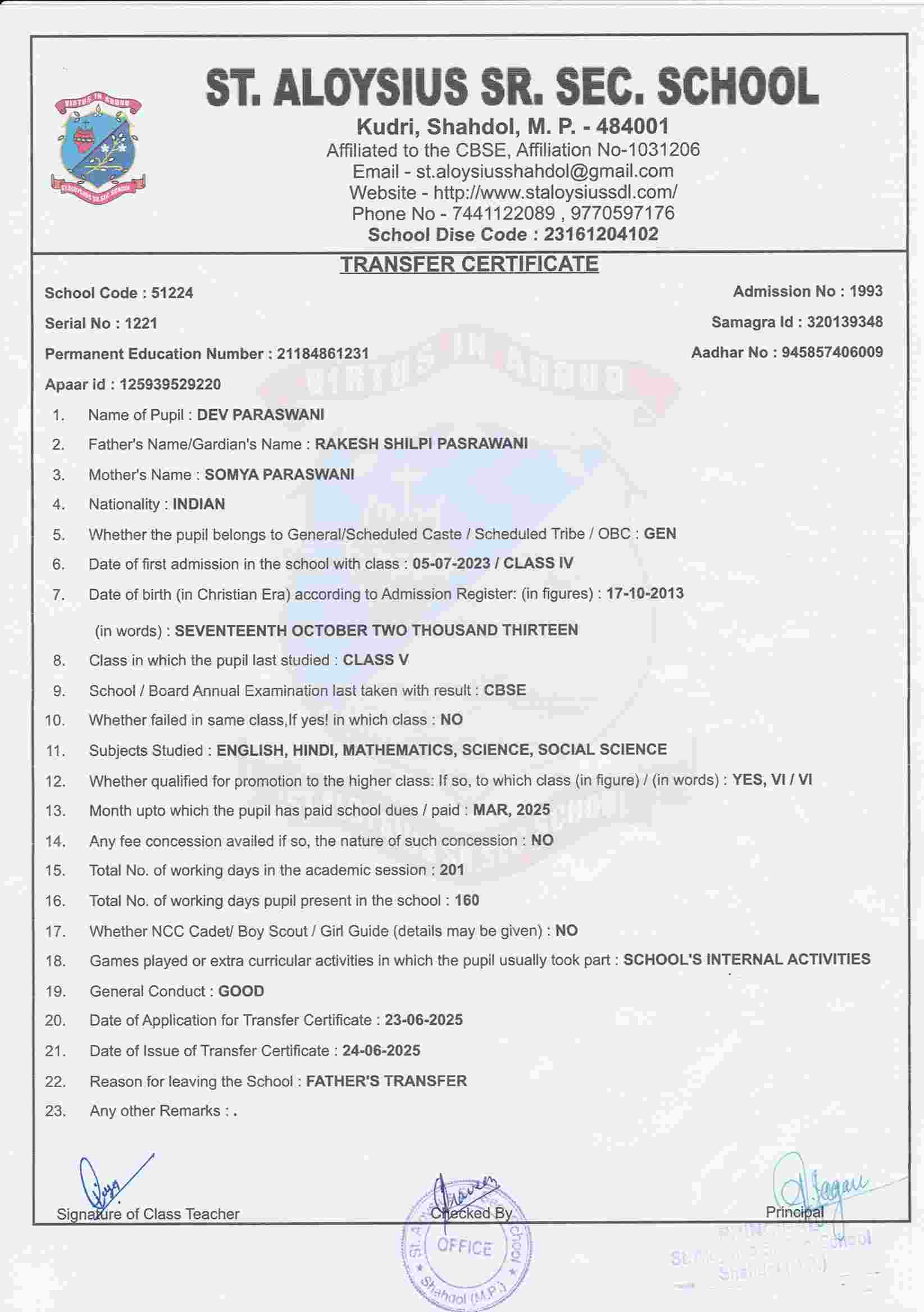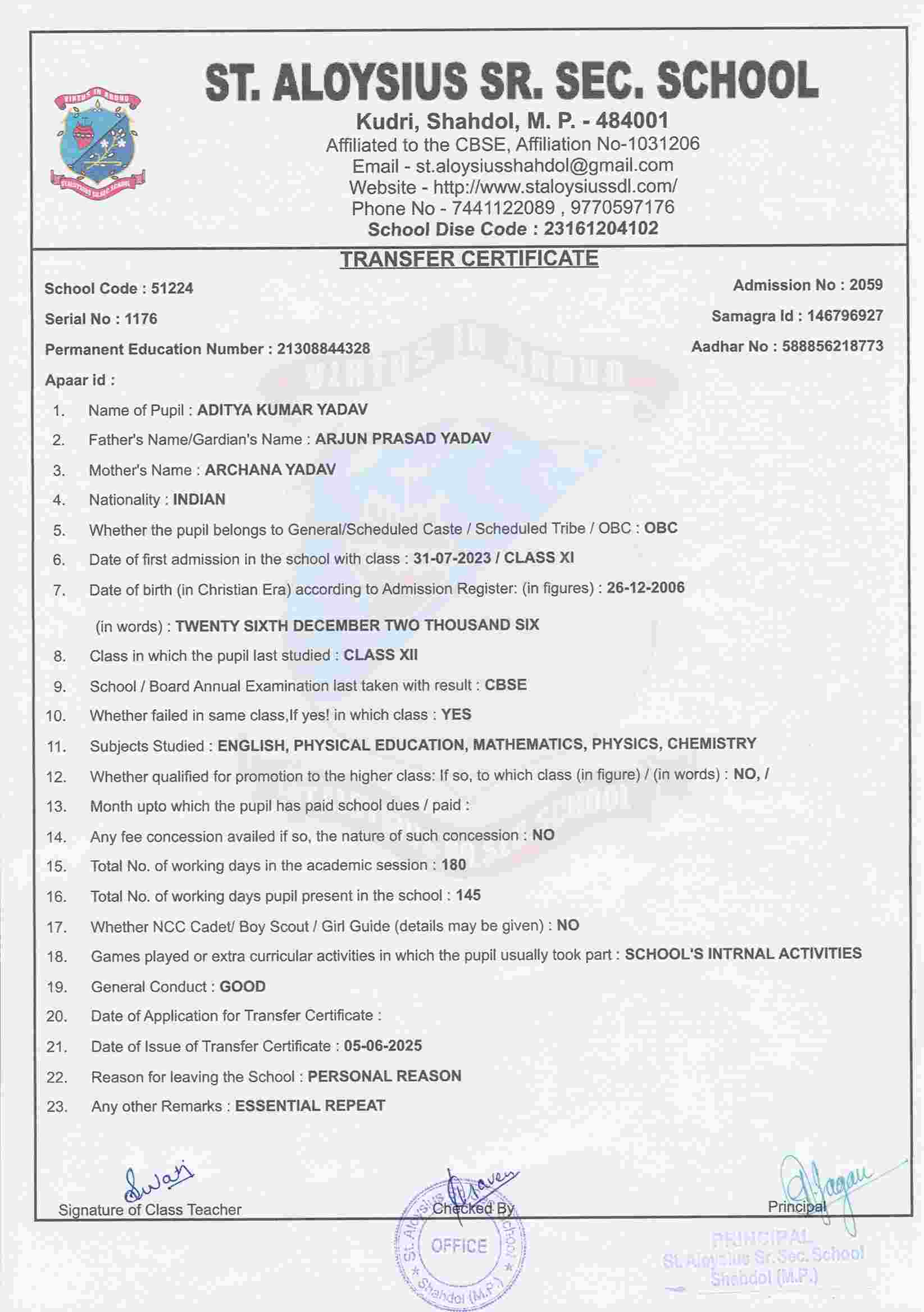 FATHER'S NAMEPRABHAT SHARMA
