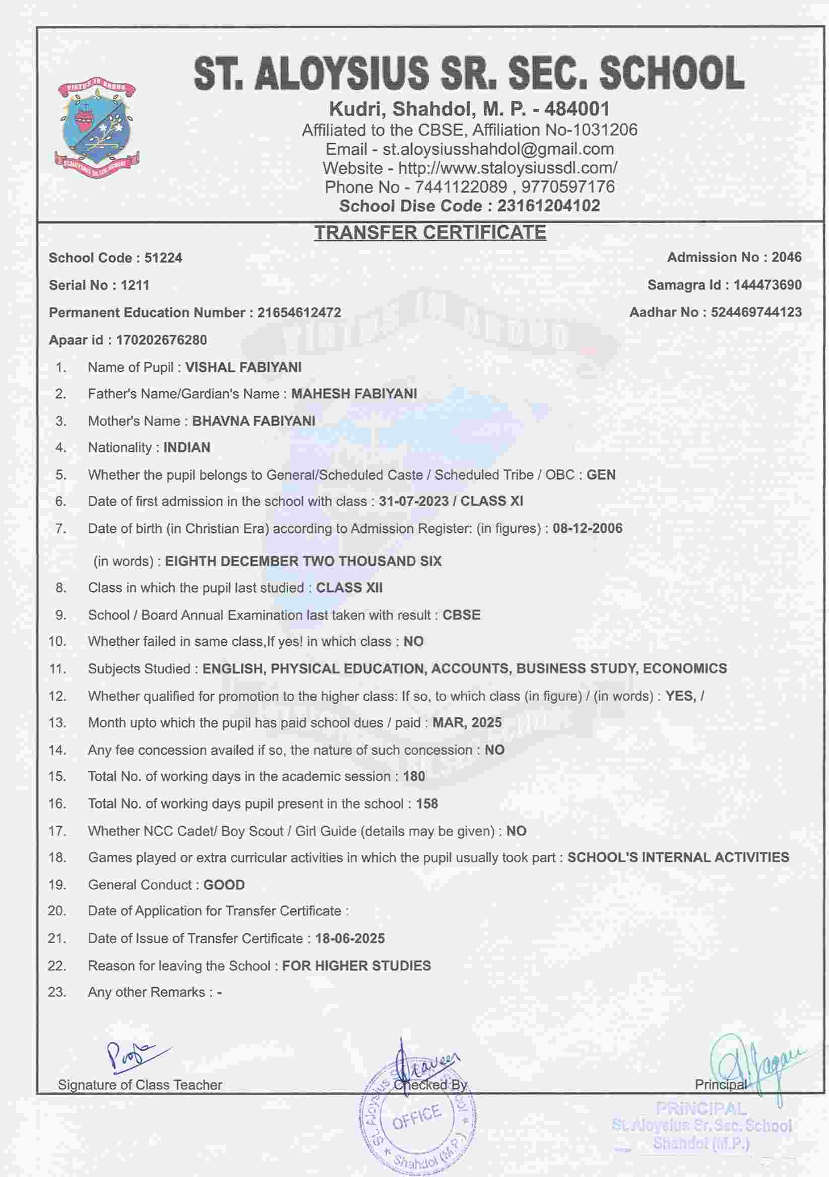 FATHER'S NAMEMAHESH FABIYANI