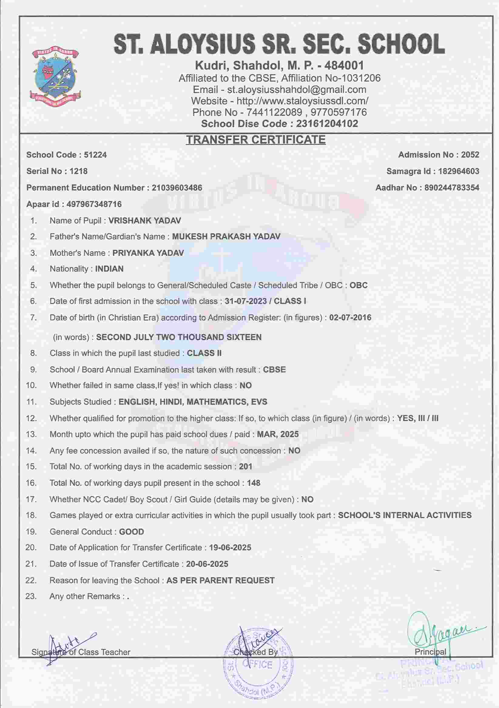 MOTHER'S NAMEPRIYANKA YADAV
